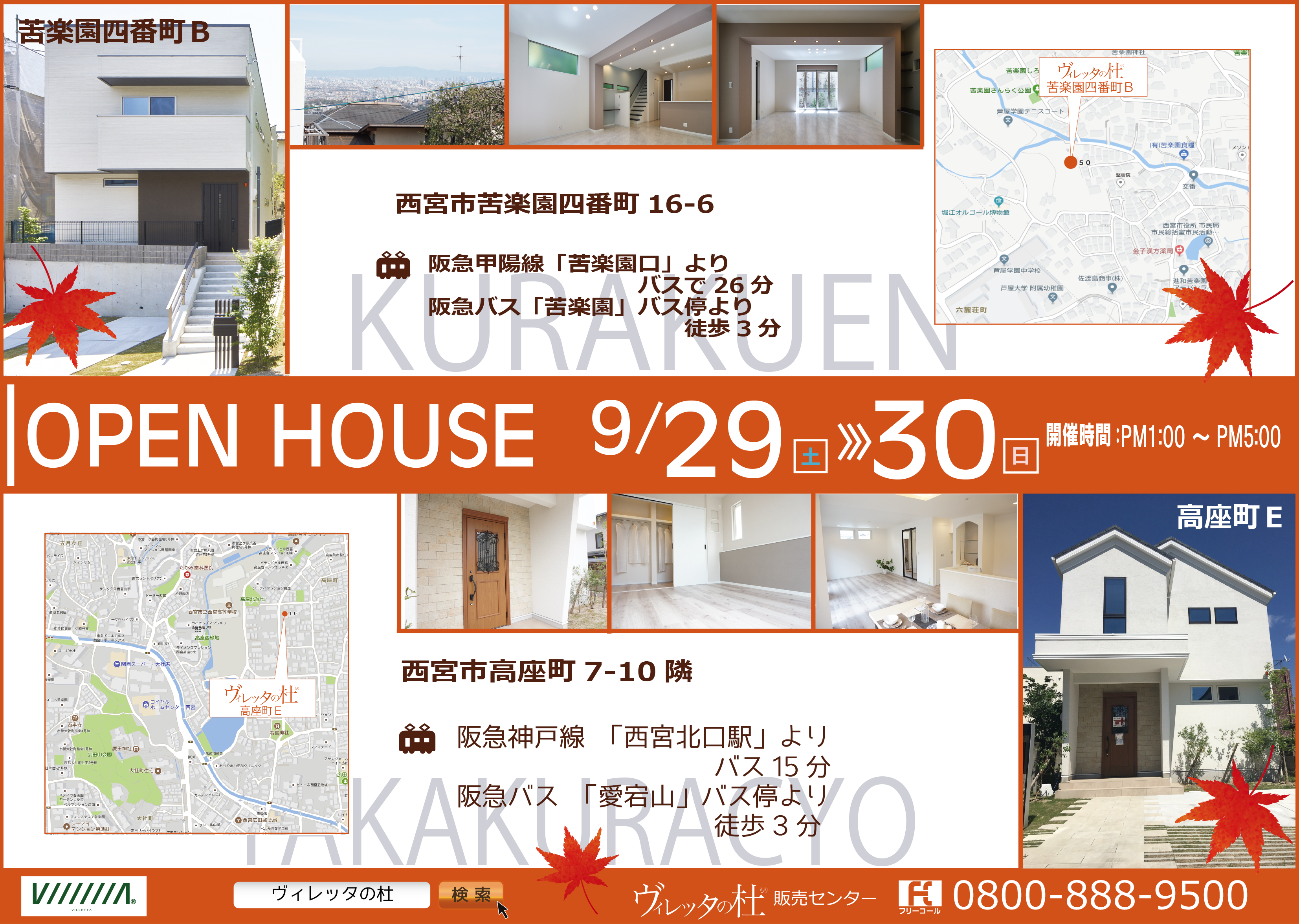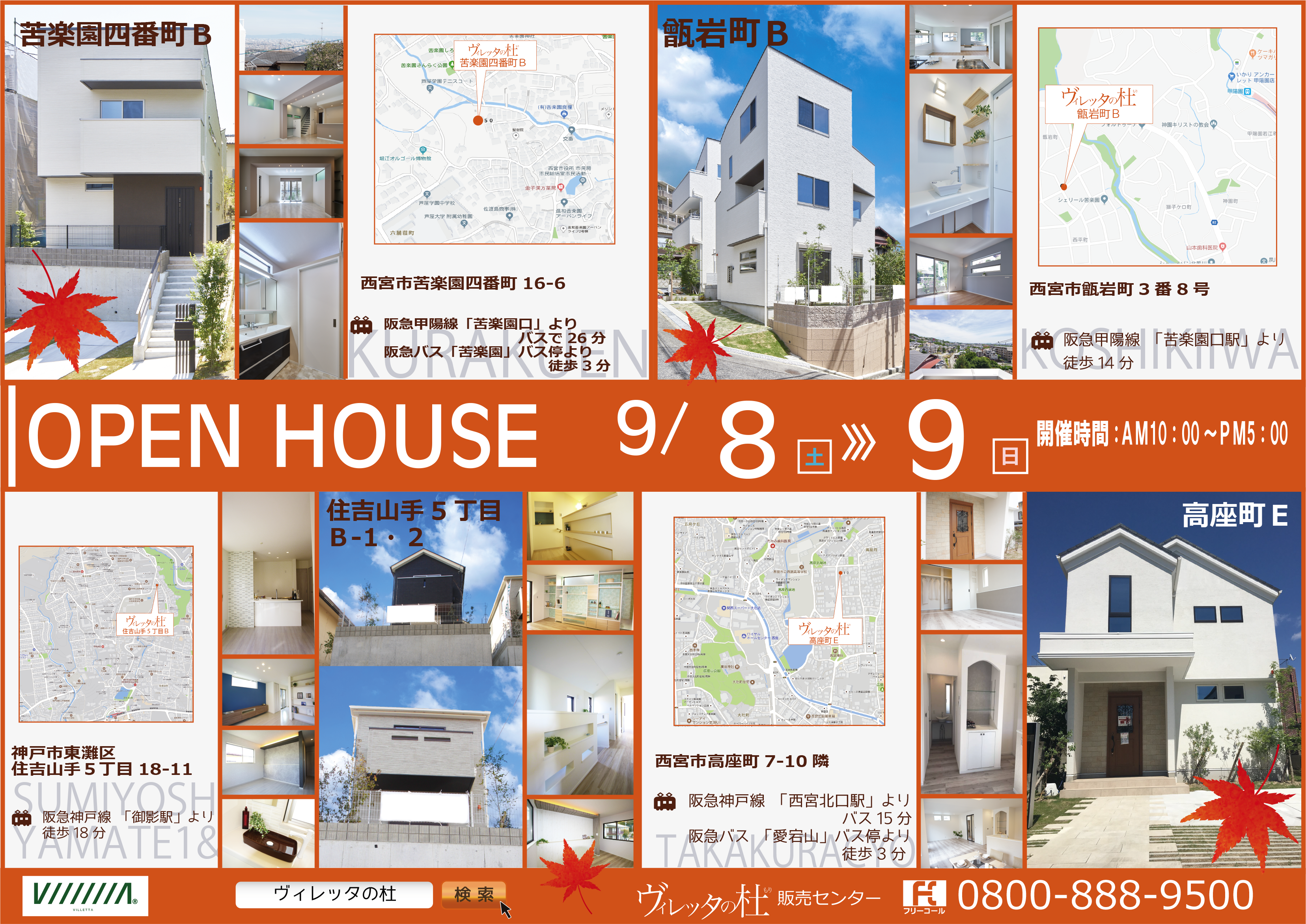 今回は、苦楽園4番町B・甑岩町B・高座町E・住吉山手5丁目Bの4物件同時開催!ヴィレッタの杜のお家を見てみよう!