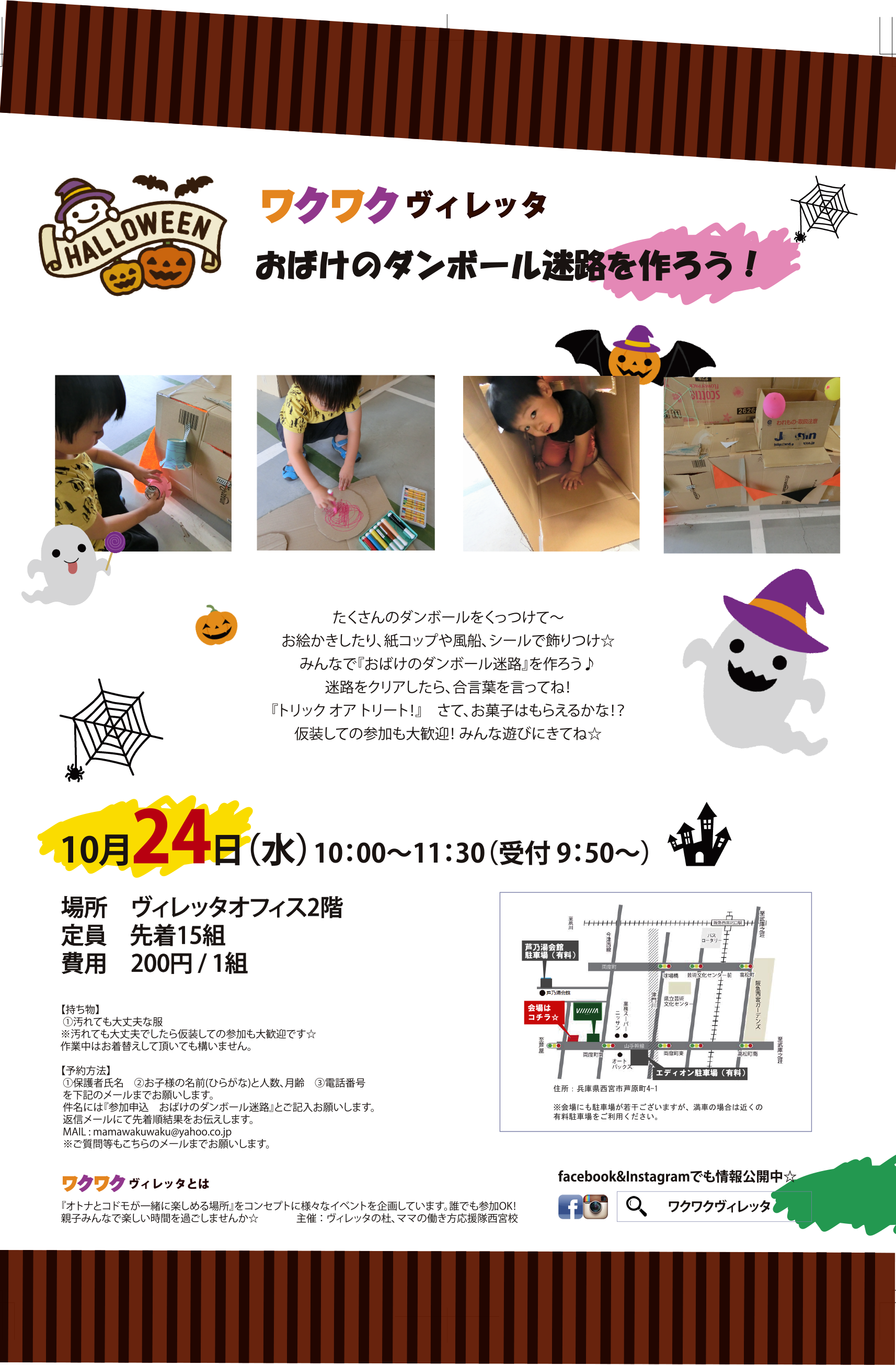 ヴィレッタの杜にも可愛いおばけが迷路を作ろうとしていますよ!?10月24日(水)ヴィレッタの杜とNPO法人ママの働き方応援隊西宮校様が主催する